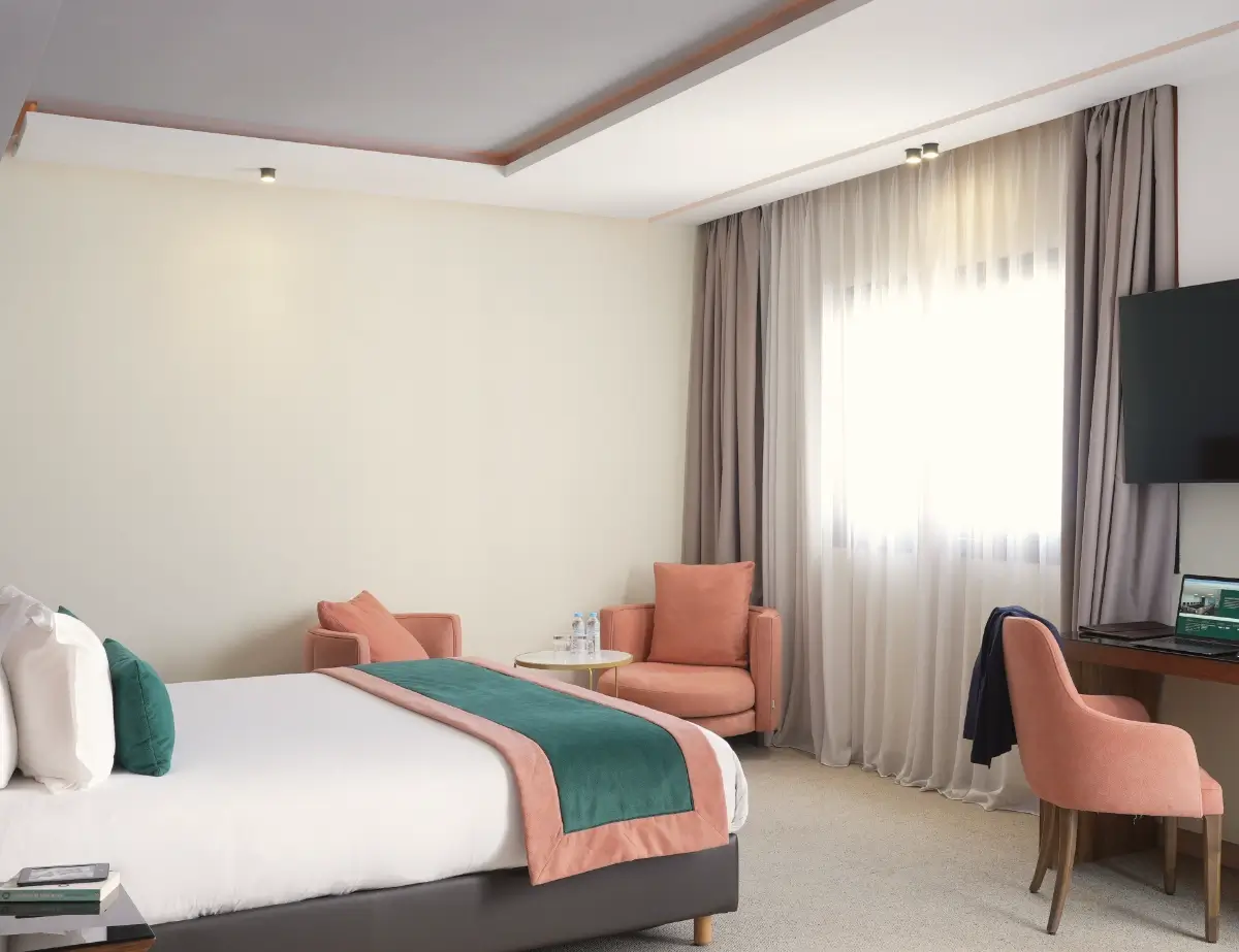 Chambres d'une superficie de 36m2 avec un décor élégant et luxueux aux riches tentures, dotées de fauteuils confortables. La plupart des chambres deluxes possèdent un balcon. Équipements : Lit Queen size - Coffre fort - Salle de bain privative - Wifi gratuit - Bouilloire, thé et café à disposition - Minibar - Climatisation / Chauffage. Room service, lit supplémentaire et lit bébé à la demande.